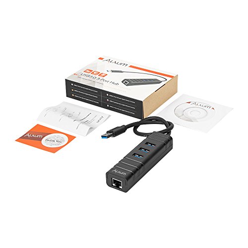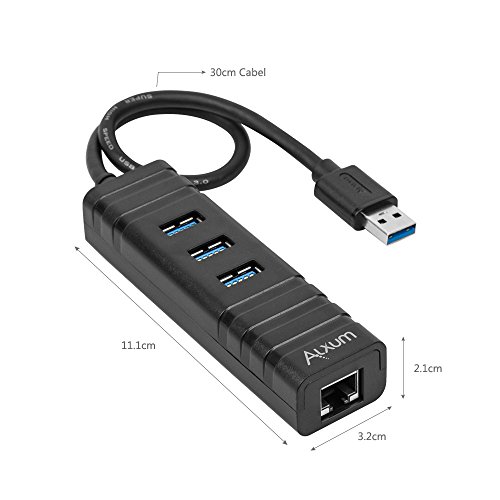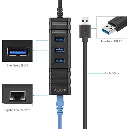 Alxum 3 Ports USB 3.0 Hub + RJ45 10/100/1000 Gigabit Ethernet Adapter Converter LAN Adapter for Apple Macbook Pro Air, iMac, Mac Mini, ChromeBook Pixel, Microsoft Surface Pro, Lenovo Yoga, Ultrabooks