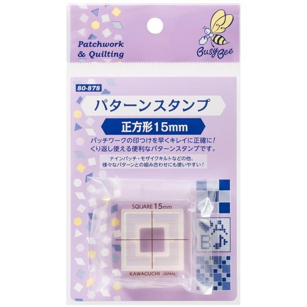 布地の裏にスタンプするだけで、縫い線・カット線の印つけが「あっ!!」という間にできます。しかも、キレイで正確!!パターンスタンプを使って、気軽にパッチワークをはじめましょう♪ |