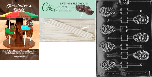 Cybrtrayd 'Small Daisy Lolly' Fruits and Vegetables Chocolate Candy Mold with 50 4.5-Inch Lollipop Sticks and Chocolatier's Guide