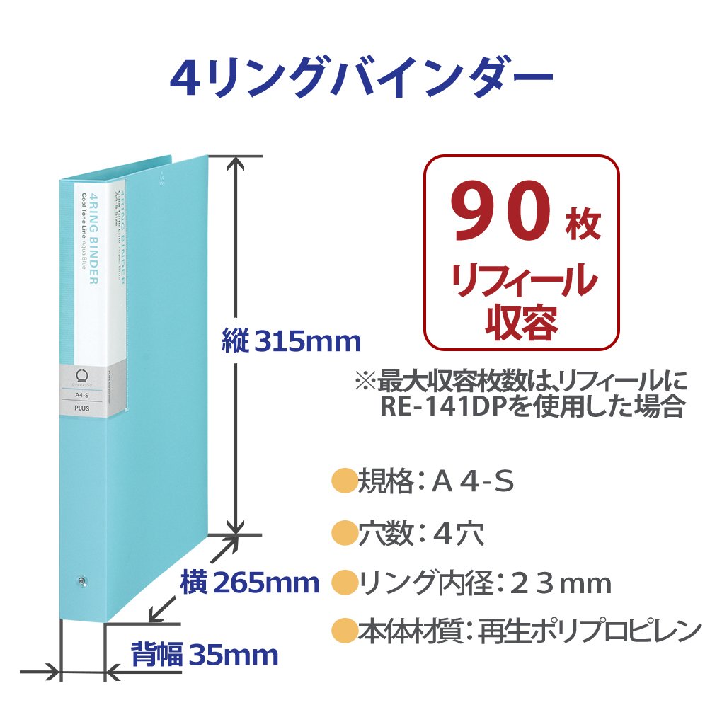 Back width 35 mm Ring inside diameter 23 mm Refill maximum capacity 90 sheets