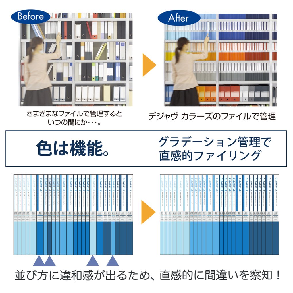 The dejaVu color series which can be managed by color proposes an efficient and easy filing which changes the file organization method so far.
