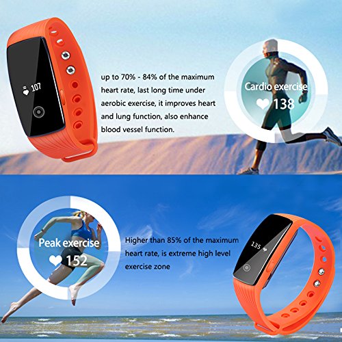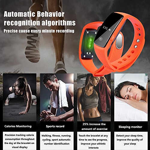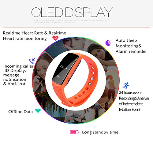 -. Title : Fitness Tracker, Heart Rate Monitor Watch, Sokos Bluetooth Smart Fitness Tracker Armband | Wristband | Bracelet with OLED Display and free iOS Android APP ... (Orange)