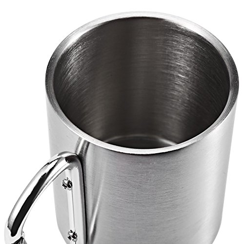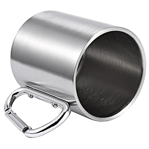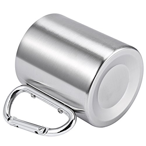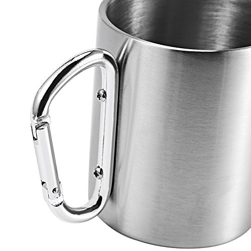 -. Title : 220ML Stainless Steel Coffee Cup with Handle Carabiner Hook for Outdoor Picnic Camping
