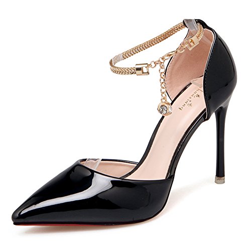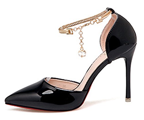 Binding : Apparel Product Description Have you ever considered your wearing at the party or the ball? Don't worry about it. This pair of stiletto pumps match perfectly with your dress. They are decorated with glittering rhinestones. The metal pendant style makes your feet look thin and sexy. The pointy toe design makes them look fashionable. The style is very classic. They won't fall behind the trend in a short time. You can wear them to some formal occasion: party, church, ball and so on. You deserve it. 0