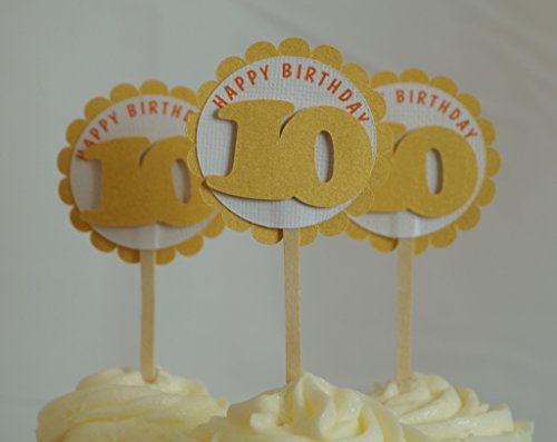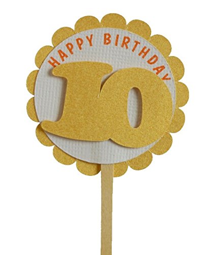 All About Details Shimmer Gold 10th Birthday Cupcake Toppers, Set of 12