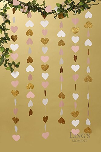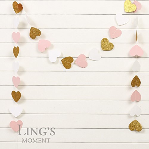 Ling's moment Paper Heart Garland (Gold Glitter+Pink+White), Hearts Hanging Decorations for Wedding, Baby Shower, Festival Items & Party Props, 8.5 Feet Long