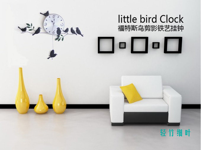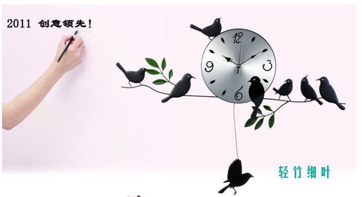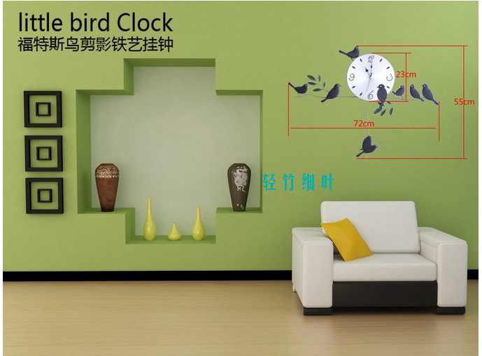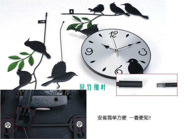 E:Modern decoration European garden wall clock living fashion bedroom clock creative cartoon character bird Material: Wood dial, metal stents, mute scanning movement