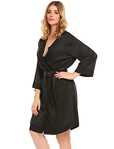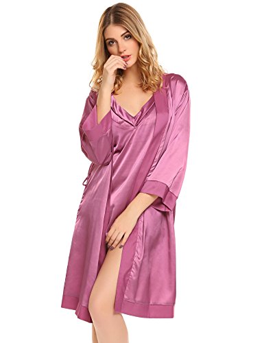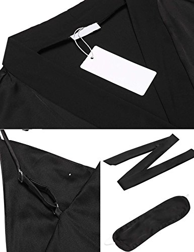 -. Title : Langle Women's 2 Pieces Nightgown and Robe Set Silk Robe Pajamas Sets with Belt and Eye Mask S-XXL