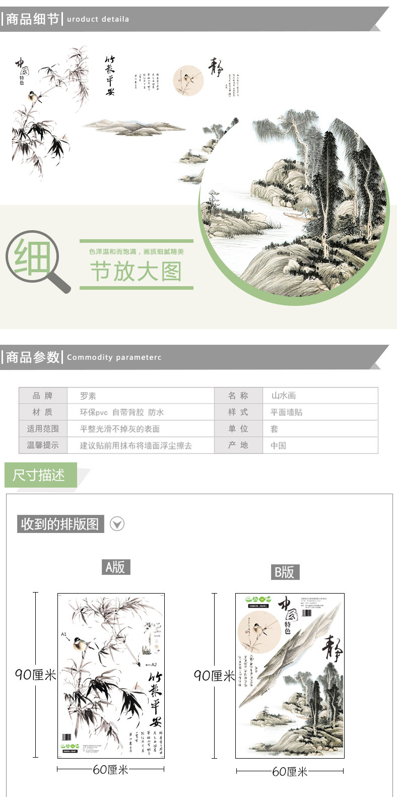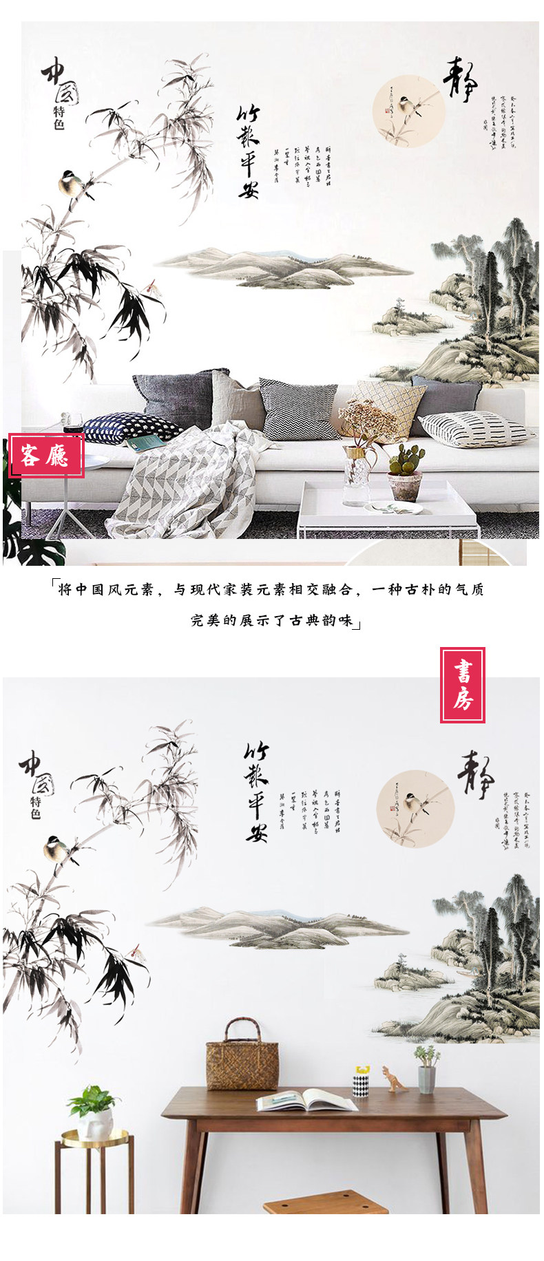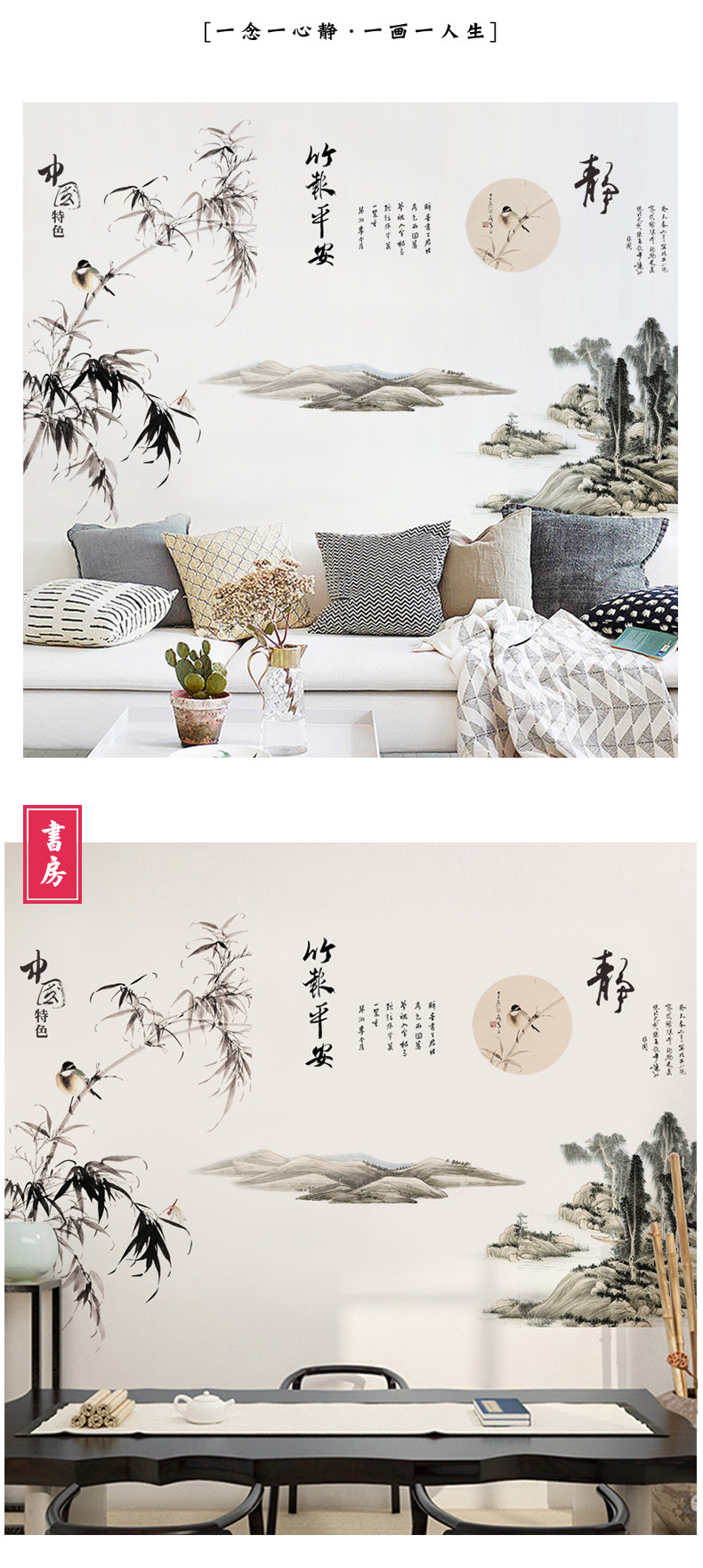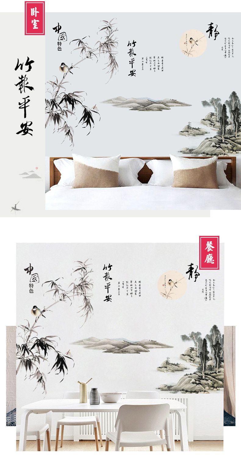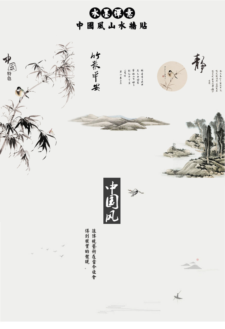 山水画墙贴壁纸自粘墙纸贴画客厅背景墙卧室床头房间装饰防水贴纸