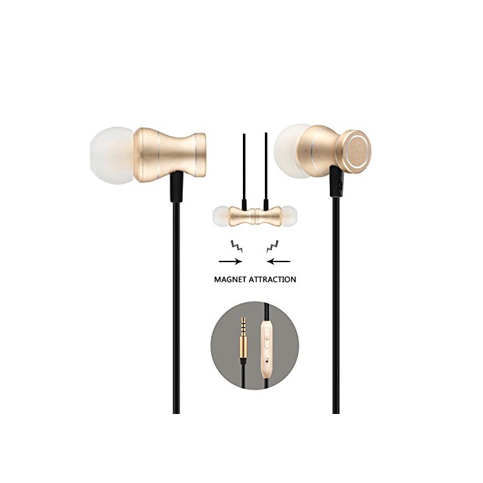 이어폰,Welmor 고음질 가나루형 귀여운 통화 가능 수납 케이스 첨부속 자기 흡인식 iPhone/iPad/Android (4컬러 선택,로즈 골드)