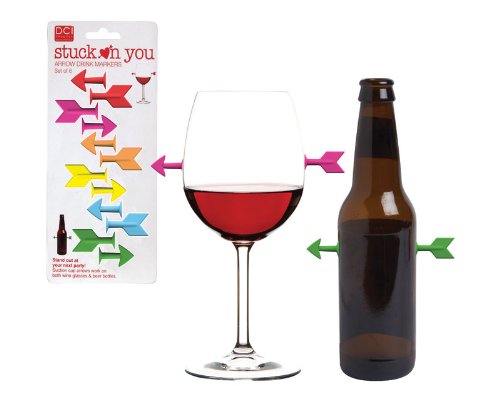-. Feature : Fun way to distinguish your wine glasses and beer bottles / Set of 6 arrows in rainbow colors / Stick and re-stick to any smooth surface / Made from silicone / Dishwasher safe