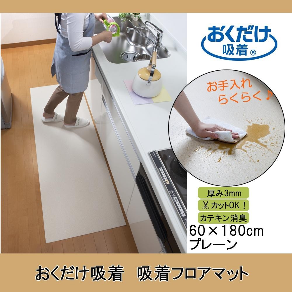 | 耐水性で、汚れに強いフロアマットです。薄くてズレにくいので、つまずきにくく、掃除機をかけても吸い上がらず楽にお掃除ができます。ハサミやカッターでサイズに合わせてカットでき、おくだけなので取り付け、取り外しも簡単です。 |