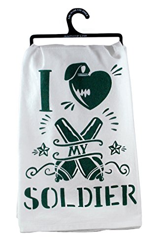 I Heart My Soldier Green & White Decorative Cotton Towel