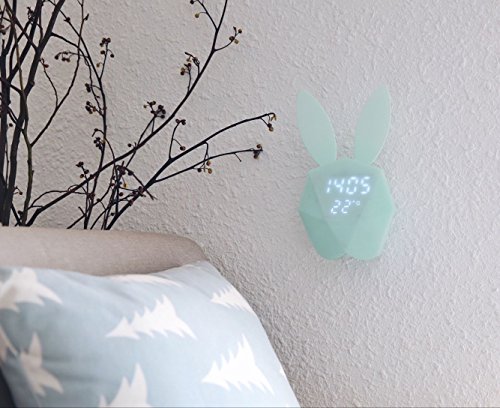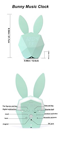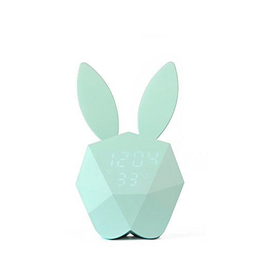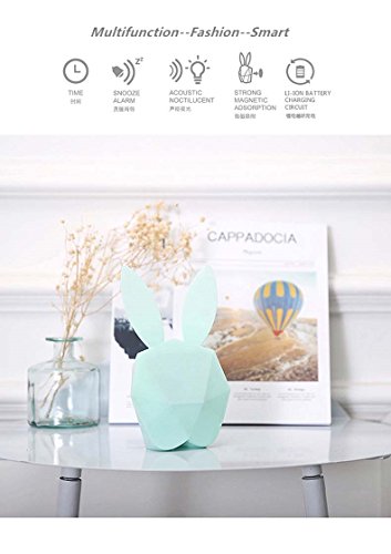 Bunny Rabbit Alarm Clock LED Night-Light Voice Control Sound Sensitive Time Temperature Digital Display Strong magnetic Adsorption Li-ion Battery Rechargeable Baby Gift (Macaron Blue)