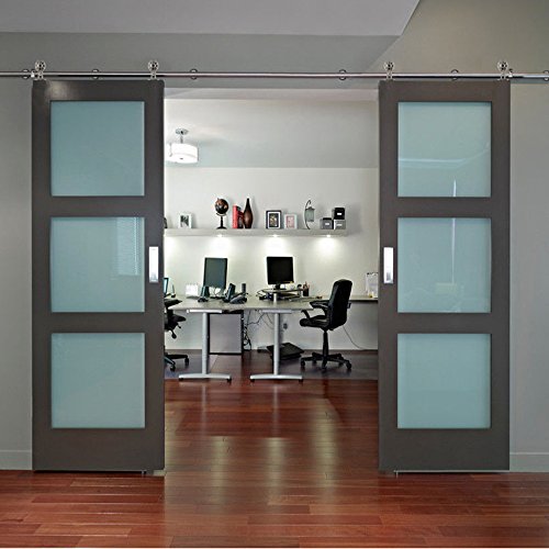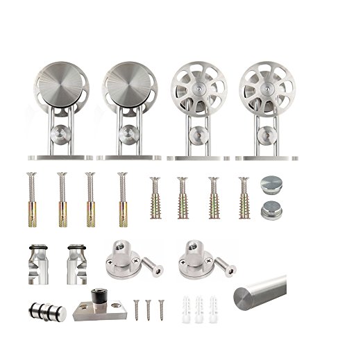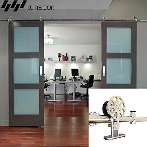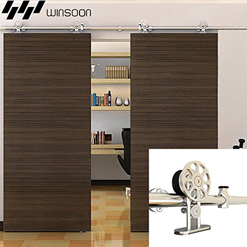 WINSOON 8 FT Indoor Sliding Decor Barn Door Hardware Kit Brushed Nickel for Double Doors
