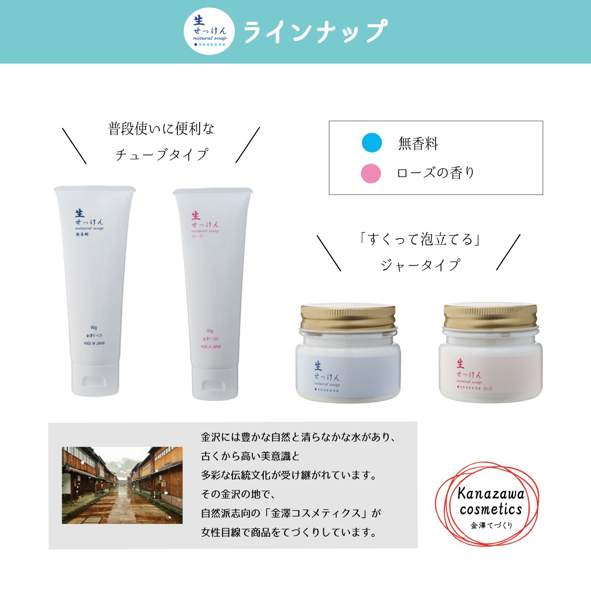 Kanazawa Cosmetics offers two kinds of fragrances, "No fragrance" and "Rose".