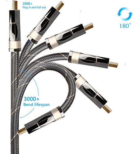 High-Speed HDMI Cable features 24K gold-plated, 99.996% and high purity oxygen-free copper, corrosion-resistant connectors that deliver optimal signal transfer with lower distortion at the point of contact. Ultra-high speed lossless audio and video transmission,This dedication to the digital signal provides sound and picture quality that is truer to the original. high quality PVC, Tough braided exterior outer layer and shielding, purity of the digital signal and longer service life.