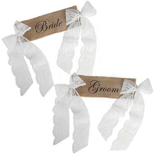 Studio : Ivy Lane Design Publisher : Ivy Lane Design Binding : Kitchen Product Description Decorate your chairs with these rustic burlap chair sashes with jute cording. Groom and bride are printed in black ink. Rustic elegance. A beautiful and memorable wedding can start from the smallest detail or idea, which turns into a mood or theme that represents you. Ivy Lane Design brings decades of experience designing collections, accessories and gifts to make your wedding or event come alive. Our designers bring together fresh innovation, an enthusiastic love for Romance and elegance in both contemporary and traditional creations, all while maintaining an eye for value, cost and budget. Design is our strength. It's in everything we create and has been from the beginning. 0