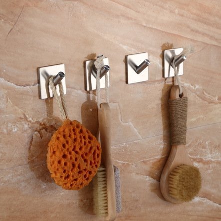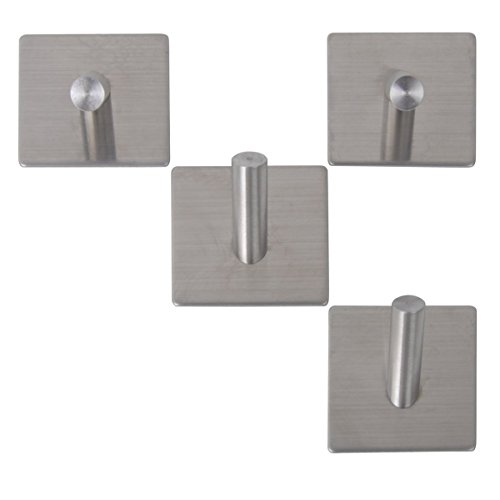 3M Self Adhesive Coat Hooks, Agile-Shop Heavy Duty 304 Stainless Steel Decorative Sticky Wall Mounted Hook Hats Keys Hooks for Bathroom Kitchen, Brushed Finish (4 pcs Single Hook)