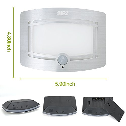 - Feature : Modern Luxury Design - An elegant lighting solution for home or office, stick or install anywhere. Diffused soft white main glow with dual LED bottom wall sconce lights. / Bright LED Lighting - Uses high-efficiency bright white LED technology which has a bulb life up to 50,000 hours. Powered by 4 AA batteries (not included). / Advanced Battery Saving Sensor - Automatic mode detects light or dark and motion up to 10 feet and automatically shuts off 10 seconds after motion ceases. Auto on/off when needed to conserve battery life. / Easy Installation - Comes with self-adhesive pads that will stick to any flat surfaces and wall mounting screws for permanant installation. Install where and how you prefer. / The EZOWare Sensor Light is the perfect multi-purpose lighting solution for home (hallway, kid's room, corridor, closet, stairs, bookself, garage, basement, shed, cup board, wardrobe, pantry & more) or office use.