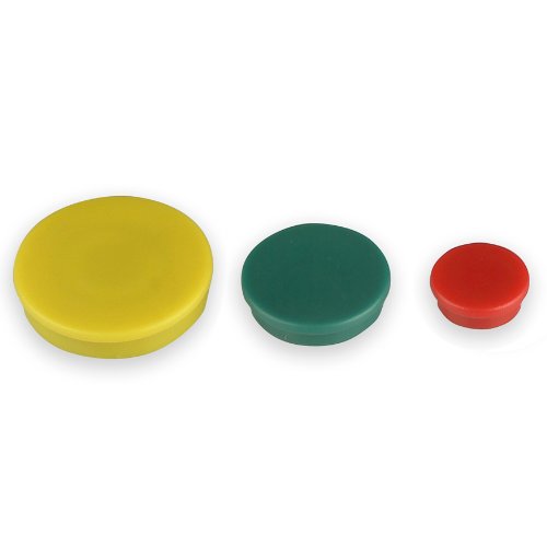 - Assorted tub of magnets contains 12 small (3/4" dia.), 12 medium (1 3/8" dia.) and six large (1 1/2" dia.) magnets
