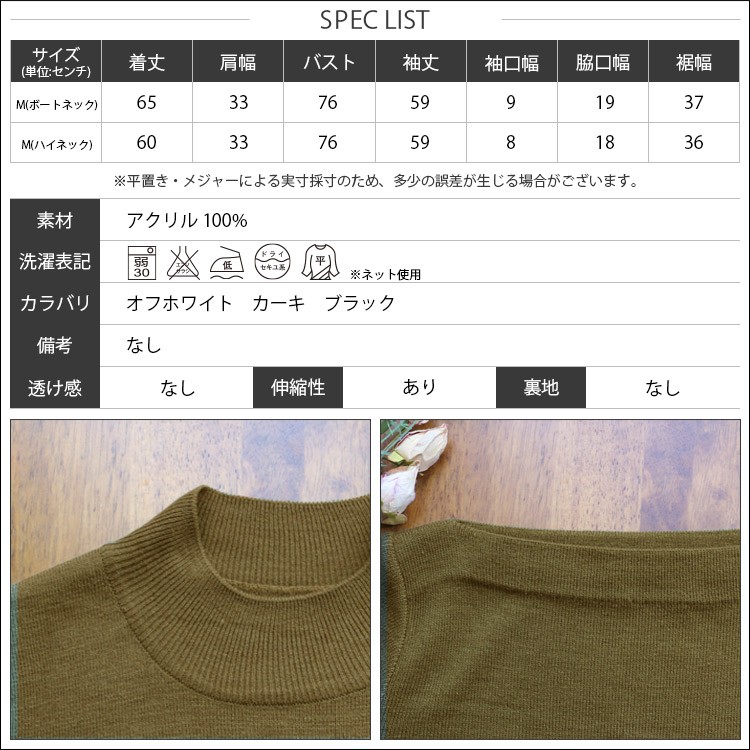 M(ハイネック) :着丈 60cm 肩幅 33cm バスト 76cm 袖丈 59cm 袖口幅 8cm 脇口幅 18cm 裾幅 36cm