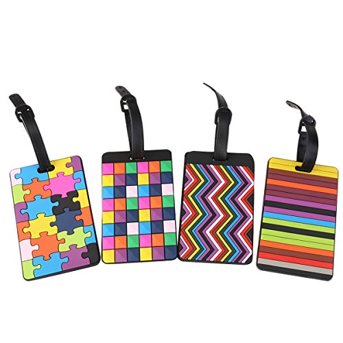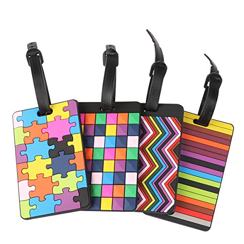 Package Including 4 *Silicone Luggage Tags Rubber ID Tags Business Card Holder for Luggage Baggage Travel Identifier Suitcase Label 4pcs