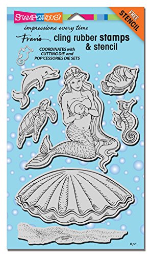 Stampendous Cling Rubber Stamp Set, Mermaid with Template