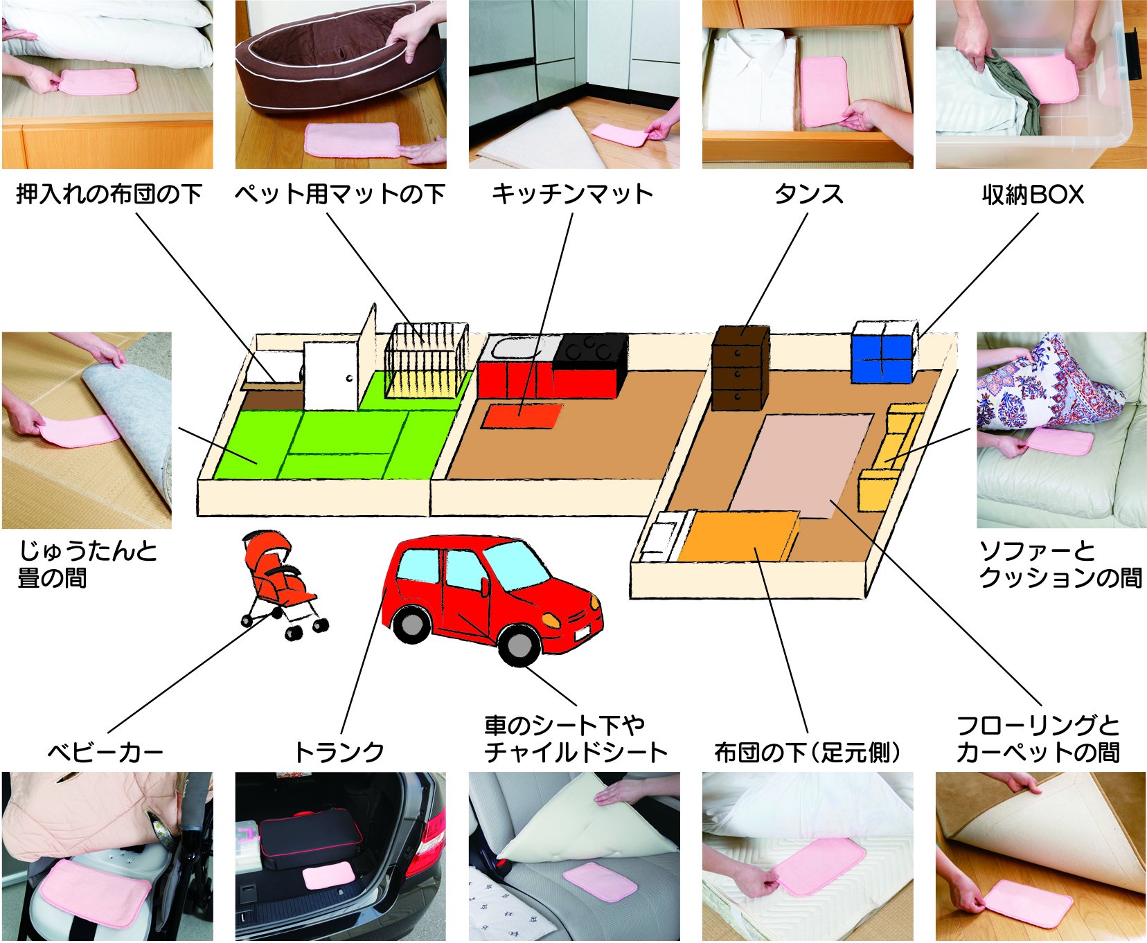 ● Futon, under the carpet, cushion, under the cushion, entrance mat, under the kitchen mat, in the closet, in the closet, car seat, child seat, stroller, wheelchair etc ... just place a ponge in the anxious place.