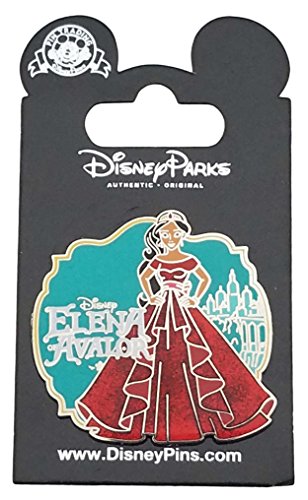 - On the front of the pin, it says Disney Elena of Avalor. Elana's dress has glitter embellishments