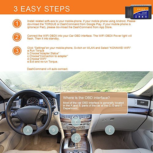 -. Feature : EXCELLENT COMPATIBILITY FOR ALMOST ALL CAR TYPES - Do not worry about compatibility. HappyCow WIFI OBD scanner works on ALL 1996 and newer petrol cars sold in the United States, including all American, European, and Asian vehicles. Supports OBD-II protocols: ISO15765-4 (CAN), ISO14230-4 (KWP2000), ISO9141-2, J1850 VPW, J1850 PWM(May not support truck, van, Hybrid or electric vehicles). / EFFICIENT READ & CLEAR Trouble Codes-Diagnose Your Car - Like a Pro and instantly transform your car into a Smart Car! HappyCow has created a top quality auto diagnostic scanner. It can read diagnostic trouble codes, both generic and manufacturer-specific, and instantly display their meaning (over 3000 generic code definitions in the database).Then you can see cars' status and know clearly when to maintain and repair. Protect your lovely car before harm occurs. / SUPER EASY SETUP - Easy to use, professional results, perfect compatibility with OBD2 standards.Support iOS (iPhone6 6 plus 5s 5c iPad Air Mini 4) & Android (Samsung S5 S4 Note 3 Note 2. LG 2 Google Nexus) & Windows. Support (free "OBD Car Doctor "APP, the "DashCommand" APP is $9.99) for iOS. Support "Torque Pro "APP for Android device. / SMART SCANNING - Our OBD2 can display current sensor data, including Engine RPM, Calculated Load Value, Coolant Temperature, Fuel System Status, Vehicle Speed, Short Term Fuel Trim, Long Term Fuel Trim, Intake Manifold Pressure, Timing lights, Timing advance, Intake Air Temperature, Air Flow Rate, Absolute Throttle Position, Oxygen sensor voltages/associated short term fuel trims, Fuel System status, Fuel Pressure. / Note - Your vehicle may not support all above parameters.How many parameters you can get is depended on the vehicle manufacturer's implementation. HappyCow WIFI OBD scanner comes with a 100% Satisfaction Guarantee. All our products are only sold in "HappyCow Official" store, and Fulfilled by Amazon. It is kindly warned that any products from other stores are not genuine for which we will take no responsibility if there is any quality problem.