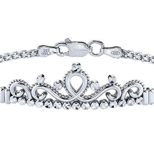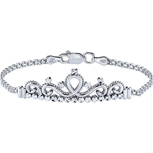 -. Title : Guliette Verona Sterling Silver P.R.Incess Crown Bracelet (Rhodium Plated)