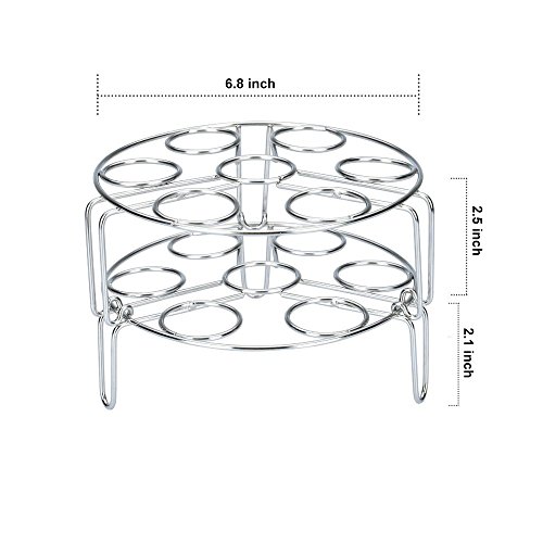1. ► Description: Steamer rack could cook 14 eggs maximum at same time.These 2 racks are made of food grade 304 stainless steel, fits 5 quart and above pots,makes it a great pressure cooker accessory with Egg Slicer.