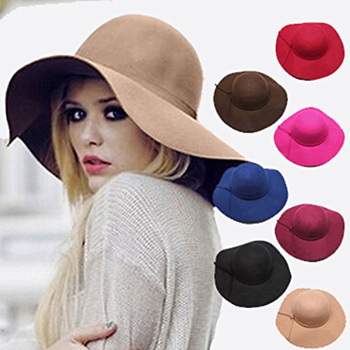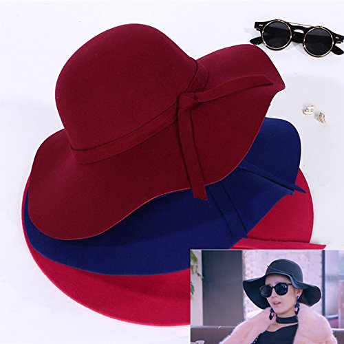 | BG-Style Vintage Lady Big Hat Sun Protection Beach Hat Wool Wide Brim Hat |
