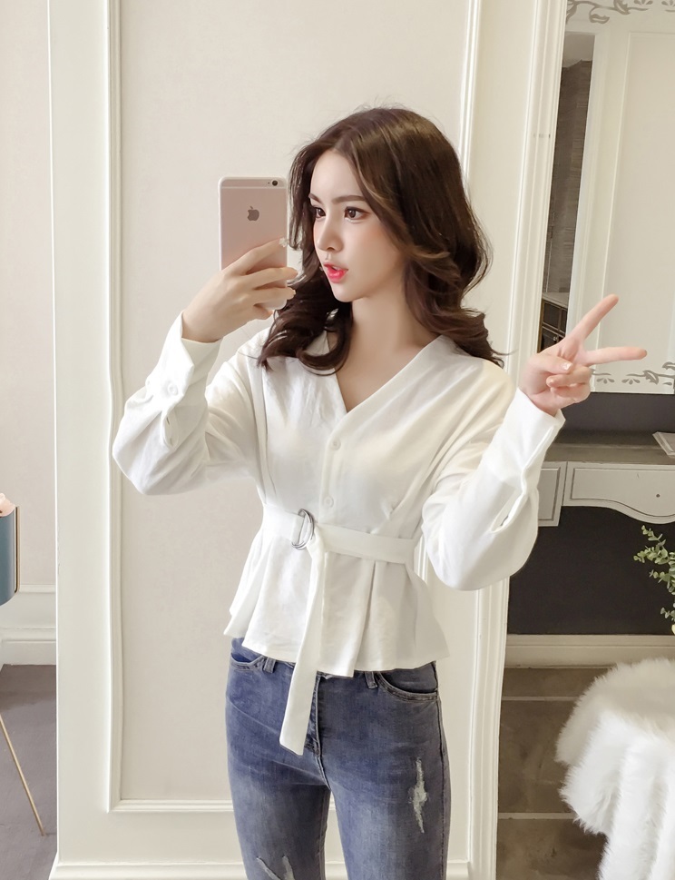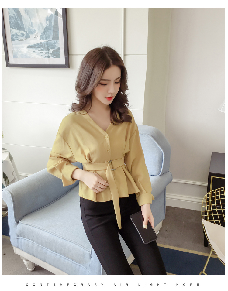 ウエストベルト付きでメリハリのあるシルエットをプラスしたきれいめトップス。