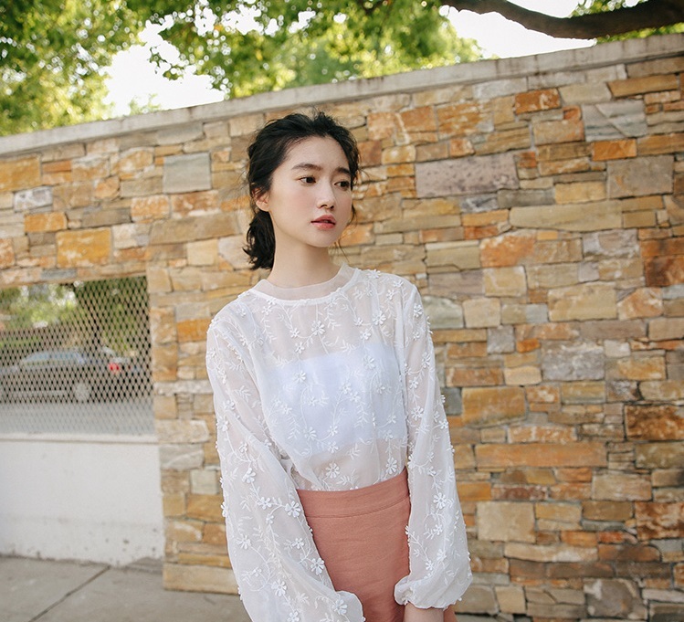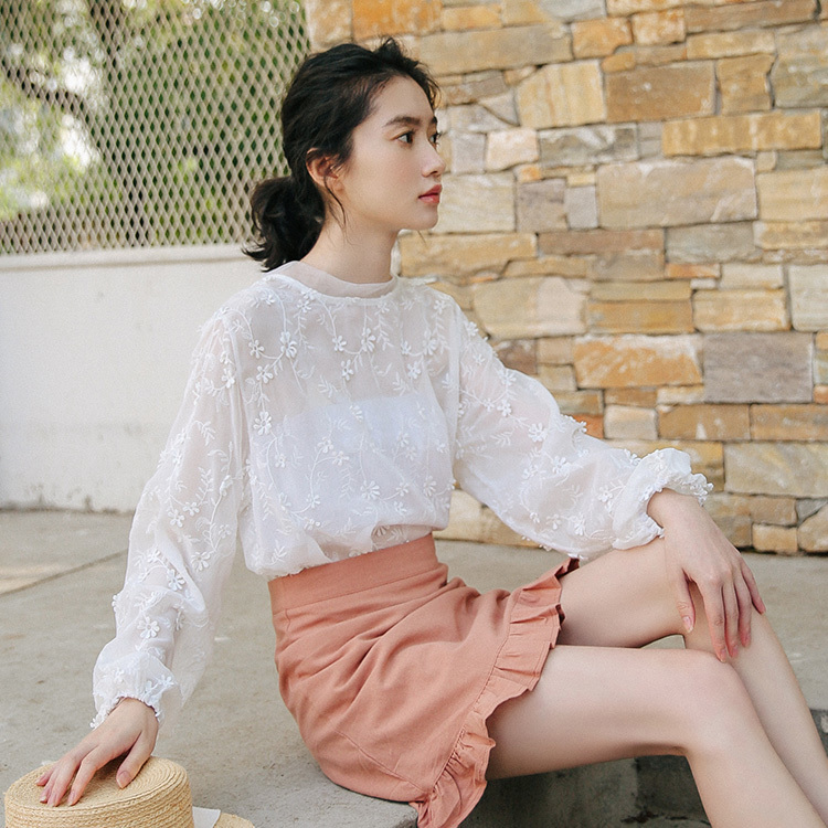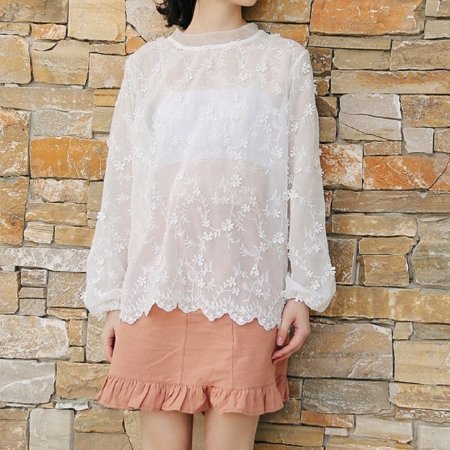 立体感のある花柄を全面にあしらったシフォンブラウスです♪