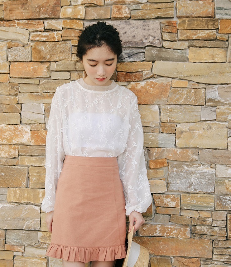 ぽわんとしたバルーンスリーブと裾のスカラップカットがポイント。