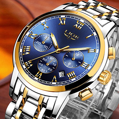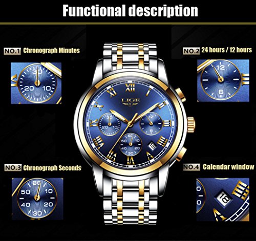 Round watch dial roman number time mark with multi-function sub-dials, dress/business watch, a great gift for family or friends