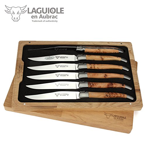-. Title : Laguiole en Aubrac Set 6 Steakmesser - Griff Wacholder - Original Frankreich mit Zertifikat - sechs Tafelmesser