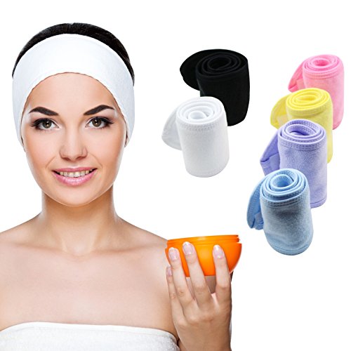 -. Title : Teemico 6 Pack Premium Spa Facial Headband Head Wrap Terry Cloth Headband Stretch Towel with Magic Velcro for Shower, Makeup and Sport, 4" Wide ... (assorted colors)