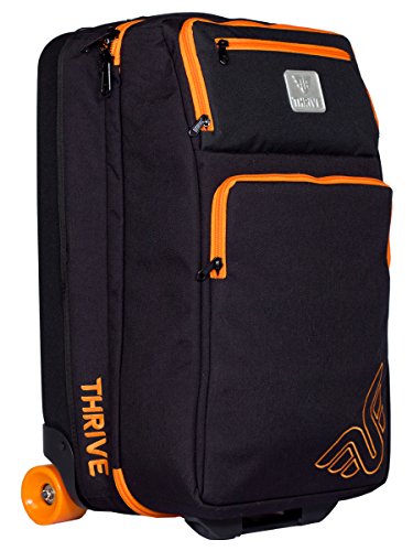Studio : Thrive Publisher : Thrive Product Description The Next Level of Quality, Durability and design! Travel is an important part of many peoples lives, whether it's for business or pleasure. For some they even live out of their suitcases. With that in mind, we decided to create the next step in travel luggage. Built on an extremely strong wheel assembly using cast aluminum, oversized longboard wheels and high grade sealed bearings you get more clearance and easier rolling. The pop color zippers and logos make sure it never gets lost in the vast sea of bags at baggage claim. Dimensions: 22in X 13in X 11in 0