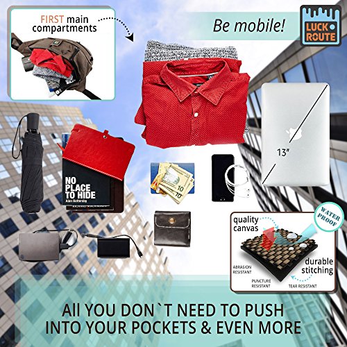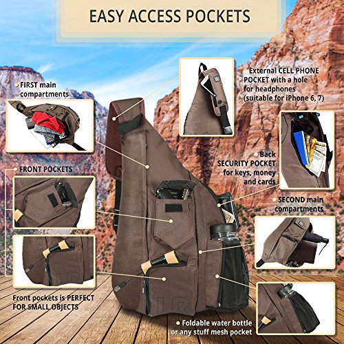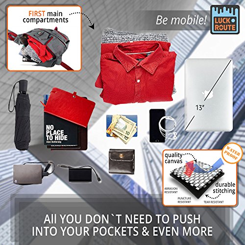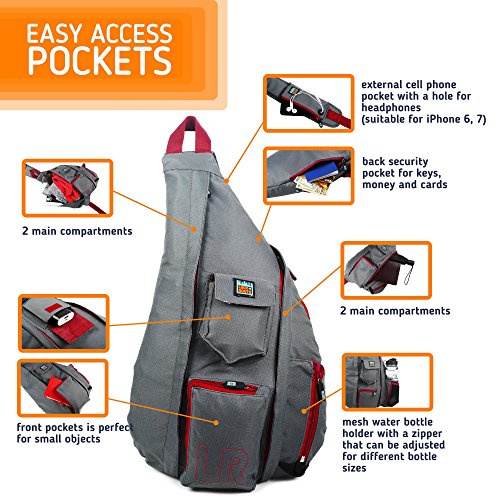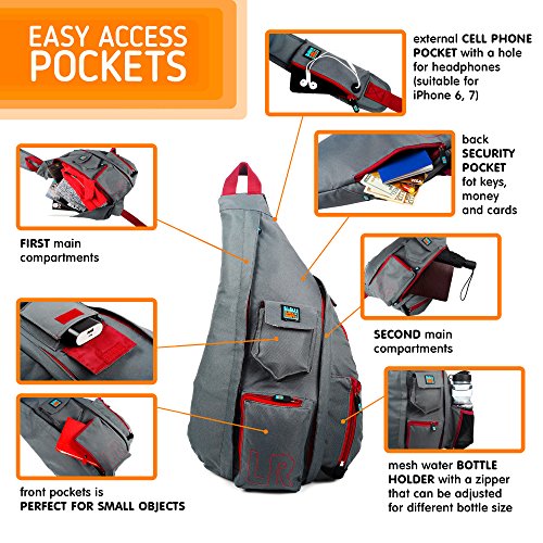 The LUCKROUTE best slingbag with water bottle holder is a perfect choice for a spacious, lightweight and multi-tasking bag for anyone who leads an active life. We improved the functionality of the backpack for hiking by adding a variety of pockets, which allow you to conveniently carry things and have quick and easy access to them. With the sling outdoor backpack you no longer have to choose what to take with you. You can take everything that you need! Our cross body backpacks are light, attractive, compact and spacious. Quality Polyester makes this a lightweight messenger slingbag that can be used to carry your tablet or laptop. The efficient teardrop shape ensures its compactness, while there is spaciousness inside thanks to the large number of pockets of different shape, form and functionality. The special pockets of this lightweight crossbody backpack: ● 2 spacious and comfortable main compartments ● external cell phone pocket on the wide strap with a functional hole for headphones (suitable for iPhone 6, 7) ● back security pocket for keys, money and cards, which is especially useful when traveling or hiking ● front pocket, created to conveniently hold and for you to quickly access small objects ● a unique water bottle holder made of mesh, which can be adjusted so that a large bottle can fit in it. The crossbody backpack for boys and girls can easily carry a tablet or laptop computer of up to 12". Books, documents, purse, keys, cell phone and other personal items can be neatly placed and easily accessible in our crossbody backpack for women and men. The comfort of the sling crossbody bag is ensured by the uniform distribution of weight and the use of a sealed wide strap. The strap backpack is modern, stylish and very comfortable. The LUCKROUTE back sling bag with phone holder is a wonderful present for men and women, boys and girls. An additional 6 months of warranty. Absolutely safe purchase.