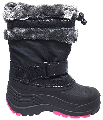 Binding : Apparel Product Description Hook-and-loop strap at midfoot with bungee lacing. Adjustable faux fur snow collar with Easy Grab Lace Lock Three-layer 8mm Zylex® liner wicks away moisture while keeping feet warm and dry. Waterproof synthetic RubberHe shell is also waterproof. Decorative ribbon tie with beads at end for added fun. SNOWAVE synthetic RubberHe outsole is lightweight and made from recyclable materials. Comfort rated -40ºF/-40ºC Made in the U.S.A. 0
