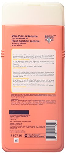 -. Binding : Health and Beauty -. Brand : Le Petit Marseillais -. EAN : 0381371171729 -. Feature : 650-milliliter/21.9 fluid ounce bottle of scented shower gel / Gently cleanses and moisturizes skin / Leaves skin feeling soft, moisturized, and nourished / Sun-kissed white peaches and nectarines harvested under Southern France summer sun / Delightfully sweet, refreshing white peach and nectarine fragrance -. Label : Johnson & Johnson Consumer Inc. -. Manufacturer : Johnson & Johnson Consumer Inc. -. MPN : Q-381371171729P -. NumberOfItems : 1 -. PackageQuantity : 1 -. PartNumber : Q-381371171729P -. ProductGroup : Beauty -. ProductTypeName : BEAUTY -. PublicationDate : 2017-01-25 -. Publisher : Johnson & Johnson Consumer Inc. -. ReleaseDate : 2017-01-04 -. Size : 21.9 Ounce -. Studio : Johnson & Johnson Consumer Inc. -. Title : Le Petit Marseillais Extra Gentle Shower Gel White Peach & Nectarine 650 Ml, 21.9 Fluid Ounce -. UPC : 381371171729