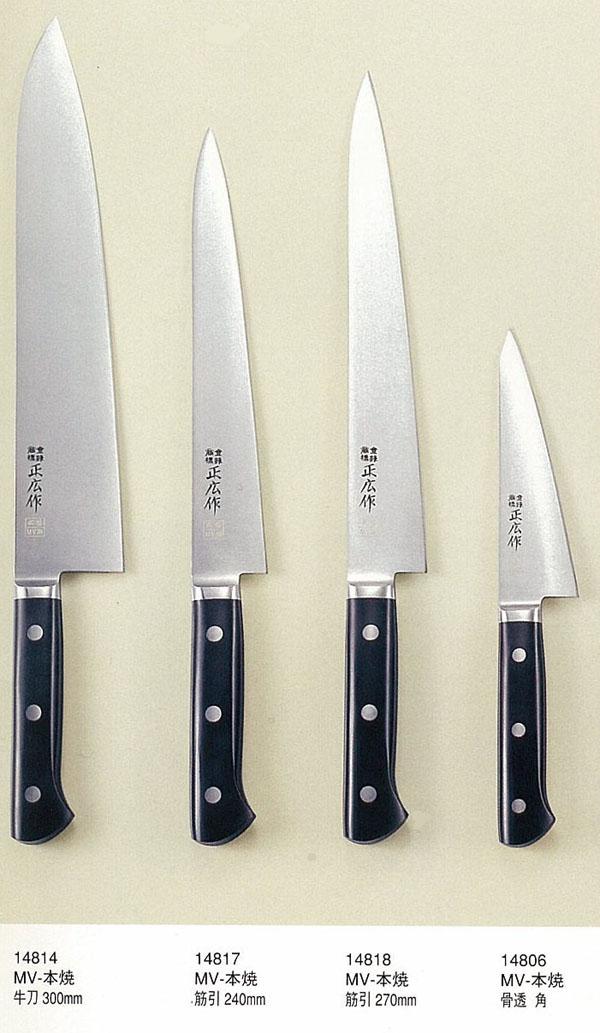 職人用庖丁に開発実績のある正広オリジナル特殊ステンレスを使用した商品。 ※サプライヤー直送品 ご注文後7~8営業日後の出荷となります【商品名】238231 正広作 MV-本焼 筋引 270mm #14818