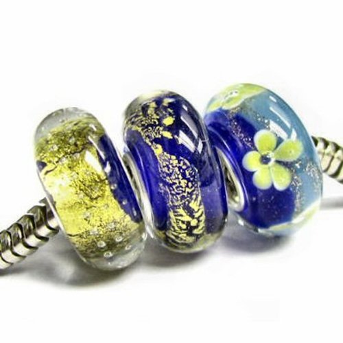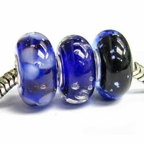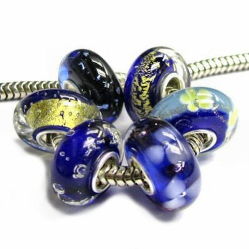 - Feature : Six Assorted Blue Glass Beads / Made of Authentic .925 Sterling Silver, glass / Compatible with Pandora Chamilia Biagi Troll 3mm and smaller Snake Chain bracelets / Murano Glass / Hole size: 4.5 mm