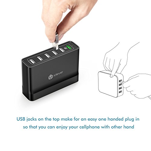 [Power & Compatible]: Equiped with world lastest Qualcomm QC 3.0 technology, the quick charge port provides a fast and efficient charge for you. 4 times as fast as conventional chargers, able to charge compatible devices to 80% in just 35 minutes. iClever SmartID Technlogy on other 5 ports enabling multi-device charging at their optimal charging speed simultaneously, up to 2.4 amps per port