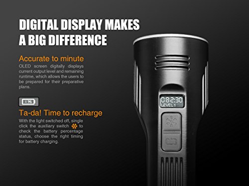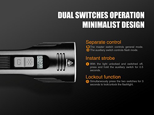 - EASY CONTROLS WITH OLED DISPLAY - Separate master and auxiliary switches conveniently located near the bezel control output while an easy to read OLED display reports current output levels and remaining battery levels and runtime. There's even a lockout mode to prevent accidental activation while traveling.