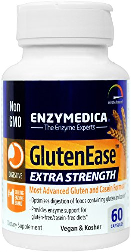 -. Feature : THE PAIN OF GLUTEN SENSITIVITY IS REAL: Many people have difficulty digesting gluten and casein proteins commonly found in foods, resulting in discomforts like gas and bloating. Gluten is the main protein complex P.R.Imarily found in grains including wheat, barley, spelt and rye. It may also be present in medications, processed foods, soaps and cosmetics. According to one U.S. survey, 1 in every 3 adults is reducing or avoiding gluten consumption. / AVOIDING CASEIN?: Casein is found in dairy products and processed foods. Even those on gluten-free/casein-free diets may experience issues due to cross-contamination from ofng foods. Following a gluten-free/casein free diet, and eliminating ofng proteins to reduce discomfort is only effective short term. Any time these foods are reintroduced, symp return. As a complement to elimination diets, enzyme supplementation may assist with digestion of foods containing gluten and casein. / MOST ADVANCED FORMULA: GlutenEase Extra Strength combines the Protease Thera-blend enzymes along with DPP-IV to provide more than double the digesting power for foods containing gluten and casein compared to GlutenEase. Proteases high in DPP-IV activity assist in encouraging healthy inflammatory responses to gluten and casein peptides, thereby better digesting and utilizing gluten and casein containing foods. / EXCLUSIVE THERA-BLEND: Thera-blend is an exclusive process that combines multiple strains of enzymes that work in various pH levels. The amylase Thera-blend enzymes included assist in the digestion of the carbohydrate portion of grains, such as wheat, which contain gluten, while the glucoamylase breaks down polysaccharides into glucose units. / QUALITY + EXPERIENCE: Enzymedica was founded in 1998 with the purpose of offering our customers the highest-potency enzyme products possible. Our goal of educating people about the importance of enzymes in overall health is what motivates Enzymedica. All of our products are made from only the highest quality enzymes and contain absolutely no fillers to ensure purity. Every product is 100% vegetarian, and we seek out vegan and Kosher ingredients whenever possible.