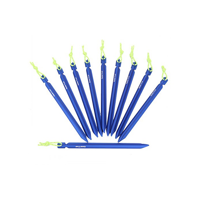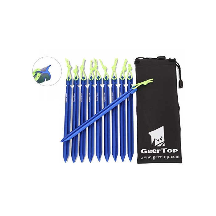 GEERTOP 알루미늄 텐트 페그(말뚝) 10개들이 18cm 반사재 들어감 코드 파우치 부착 하이킹 캠프 등산용